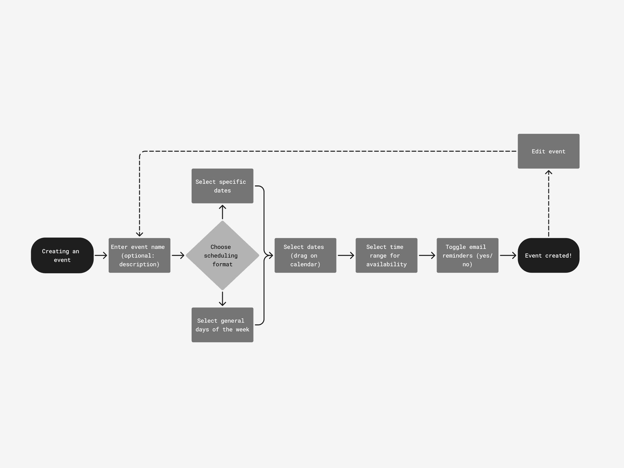 Existing group scheduling tools technically solve the problem of finding overlapping availability, but the experience often feels harder than it needs to be. Outdated interfaces, dense grids, and unclear visual hierarchy make it difficult for users to confidently enter their availability or quickly understand the outcome. Important features like accounts or dashboards are also missing, meaning events can’t be easily revisited or adjusted, forcing people to save links manually or start over entirely. These tools function, but they often do so by asking users to adapt to their limitations.