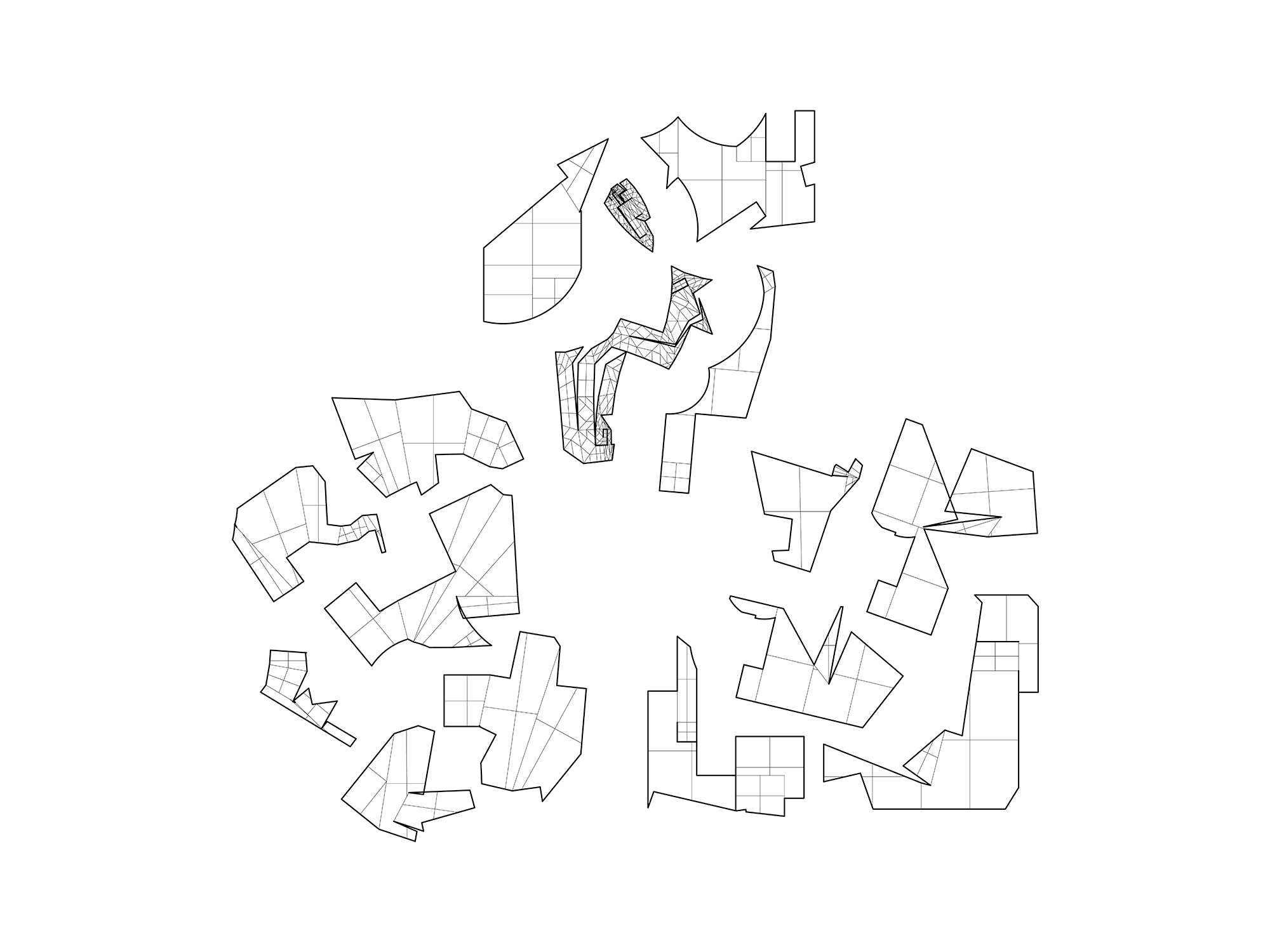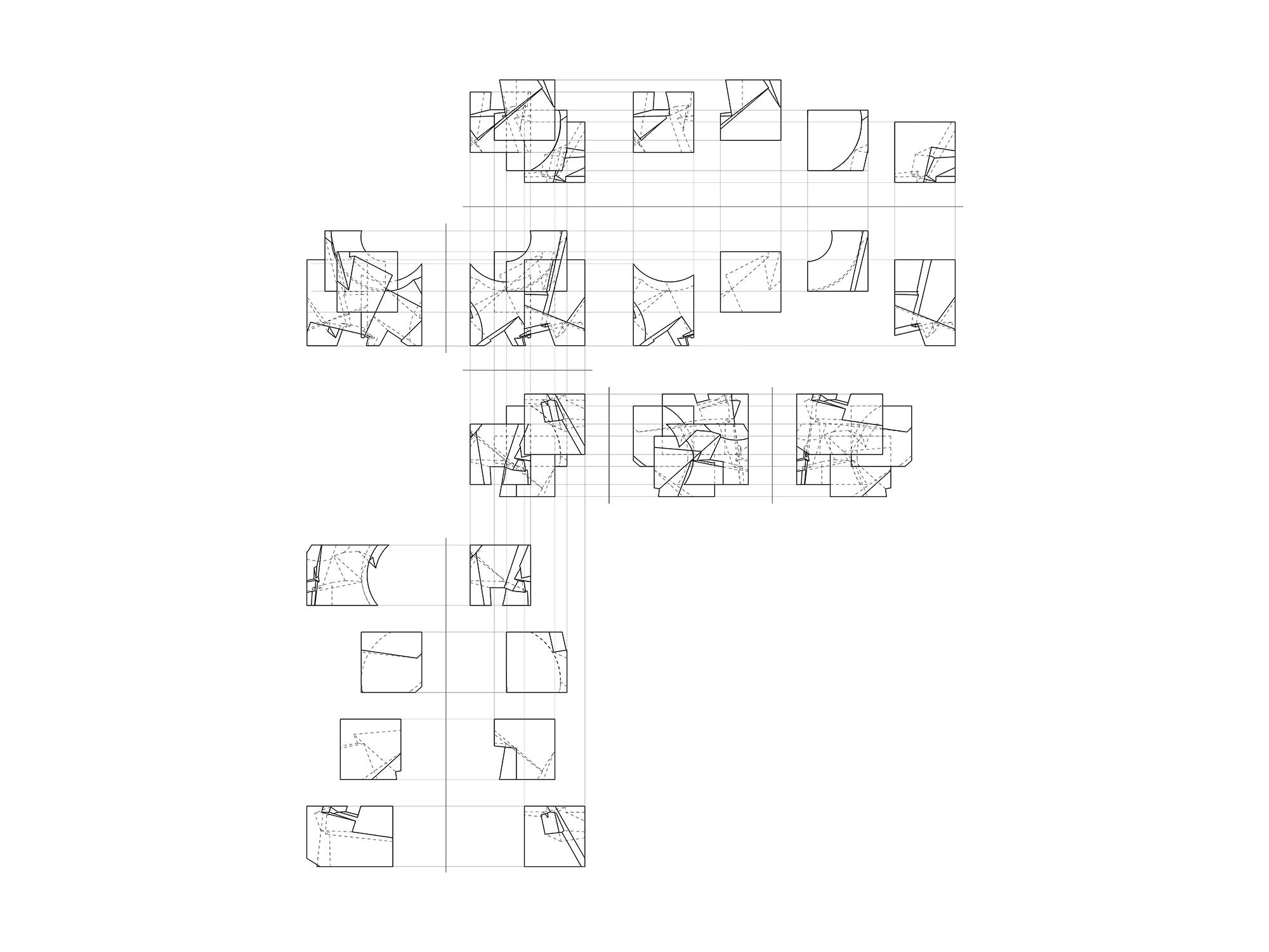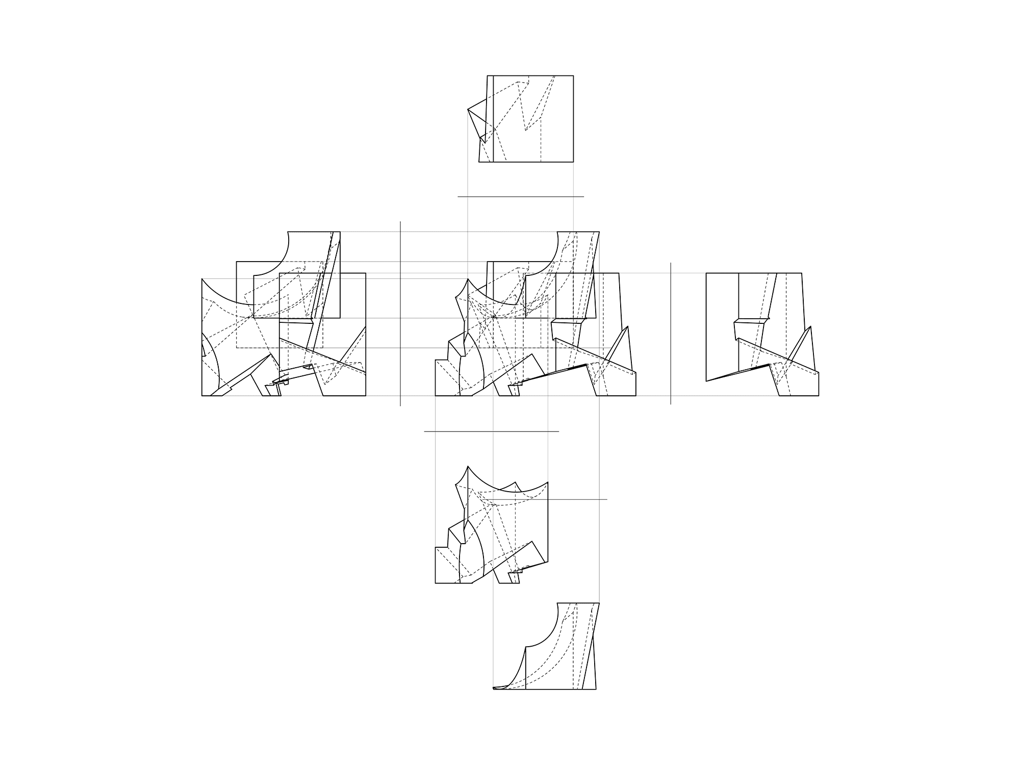 I produced a set of sketches and drawings to present the final design to Cooper Union faculty from multiple perspectives, including sections, rotations, and unrolled elevations. These drawings focus on clarity and composition, helping communicate the project’s form and spatial structure in a more graphic, two-dimensional way.
